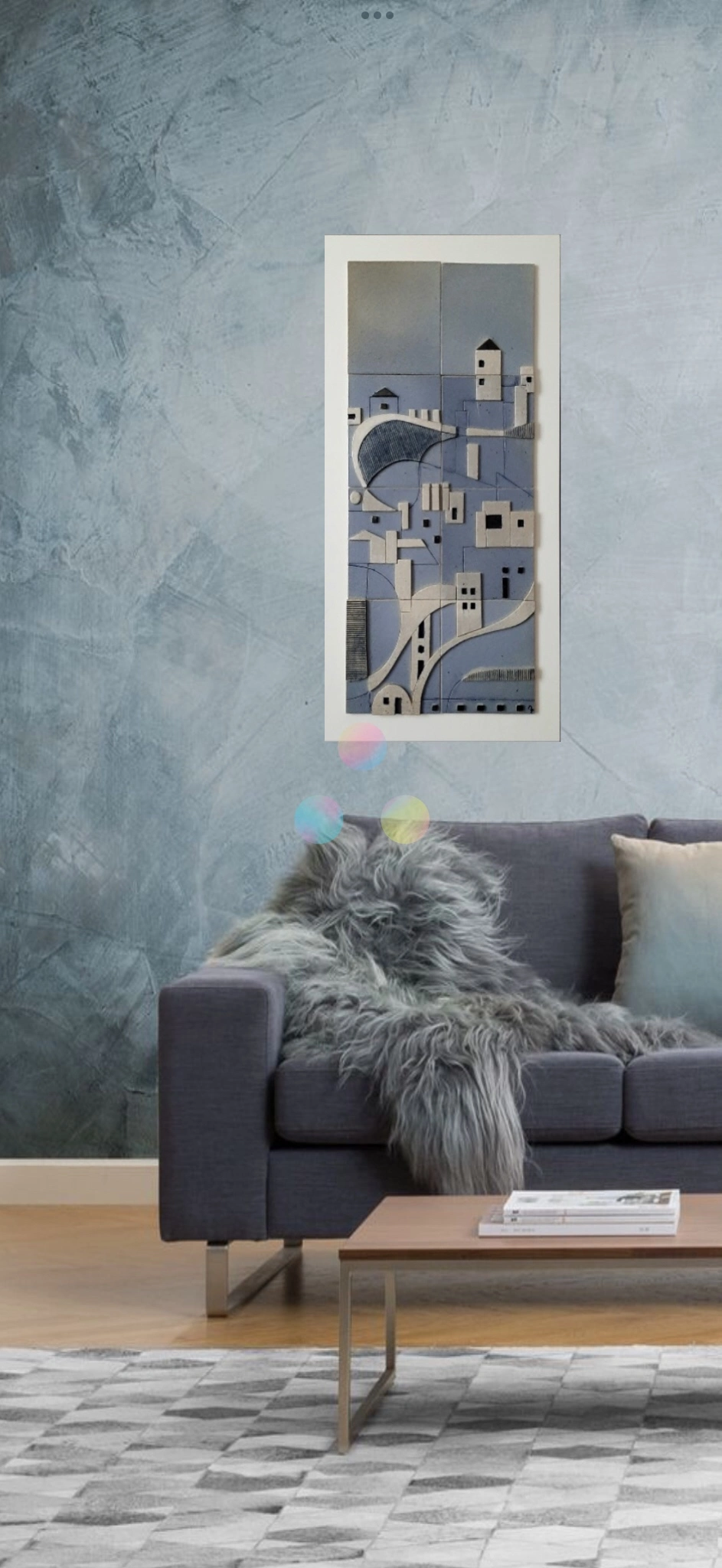 Santorini no solo es una representación arquitectónica de la ciudad, sino una reinterpretación artística que invita a reflexionar sobre la relación entre el espacio construido, el paisaje natural y la interacción humana con el entorno. La perspectiva arquitectónica, logra capturar la esencia de Santorini a través de una obra que desafía las convenciones tradicionales de la cerámica, creando un diálogo entre el arte, la arquitectura y la naturaleza.