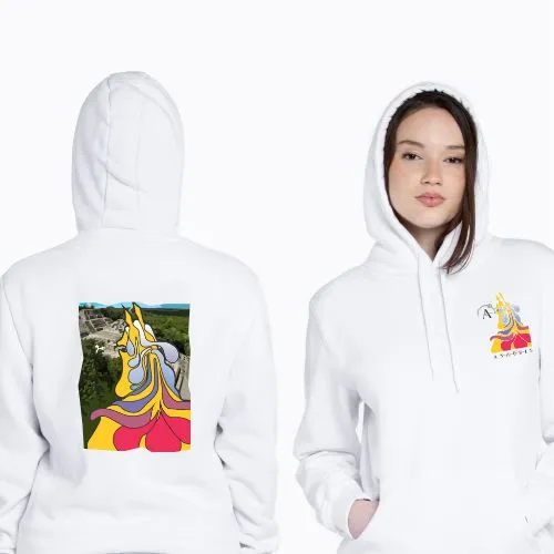 Esta obra se entrega en impresión tipo poster de alta calidad y una sudadera en color blanco con la impresión de la obra (Al momento de la compra indicar talla), así como la firma de la artista en ella. Acompaña una descripción detallada del lugar en donde se encuentra de “visita” nuestro  caballo.